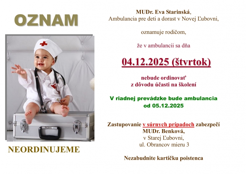 Ambulancia pre deti a dorast - MUDr. Eva Starinská (od 02.1.2025)