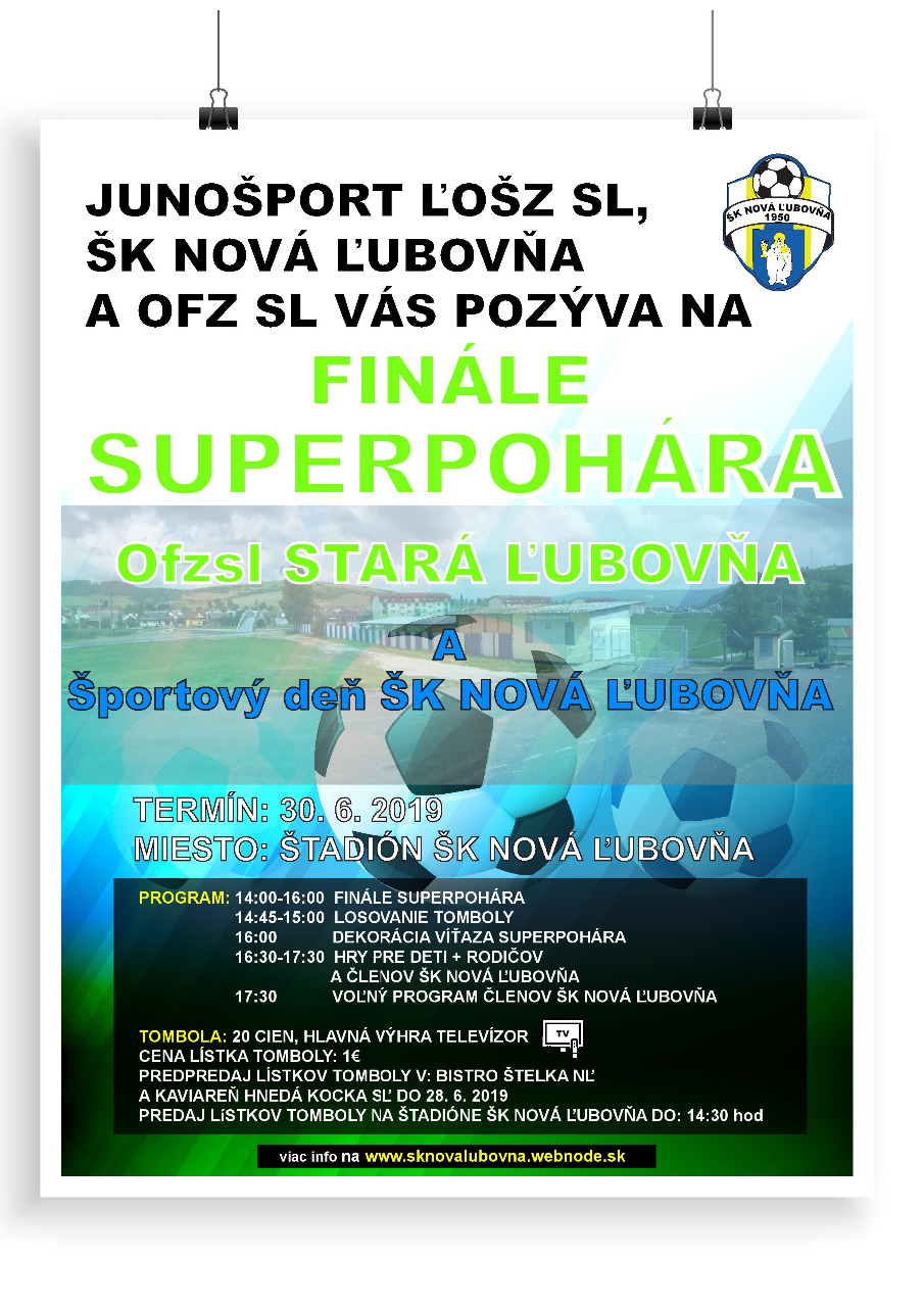 Program začal o 14:00 hod. finálovým zápasom. Po jeho odohratí nasledovalo losovanie tomboly, dekorácia víťaza superpohára, hry pre deti a rodičov, členov ŠK Nová Ľubovňa.