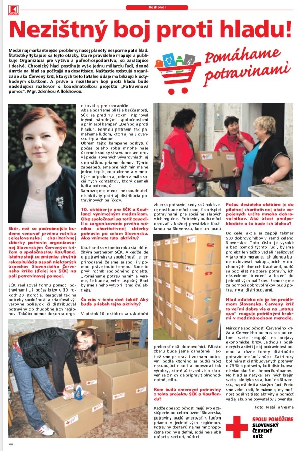 10.10.2014 bola v Kauflande zbierka potravín od nakupujúcich občanov. Dve členky, dobrovoľníčky Miestneho spolku SČK z Novej Ľubovne - Anna Jendrichovská a Janka Žembová, spolu s dvoma kolegyňami z Kamienky oslovovali kupujúcich a tí darovali potraviny pre účely pomoci pre mnohopočetné rodiny s deťmi, sociálne slabších občanov, seniorov a ľudí v núdzi. Táto zbierka prebiehala počas celého dňa. Dobrovoľníci strávili v Kauflande 4-hodinovú službu. Zo zozbieraného množstva potravín sa vytvorilo 18 balíčkov za celý okres. Sami sme boli milo prekvapení reakciami kupujúcich. Milo nás prekvapili darované množstvá, no Pán Boh zaplať aj za malý balík cestovín, či marmelády.