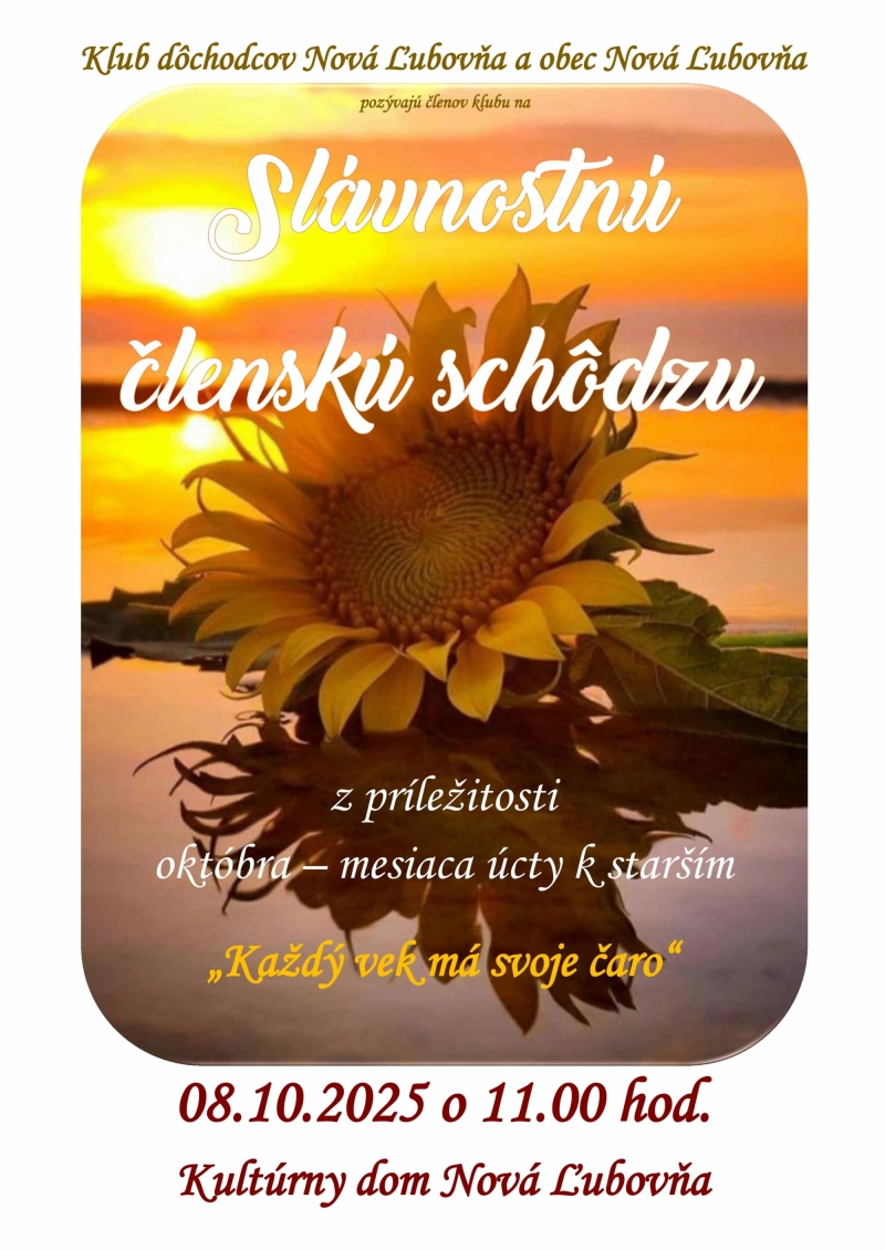 Pozvánka na Slávnostnú členskú schôdzu Klubu dôchodcov 08.10.2025