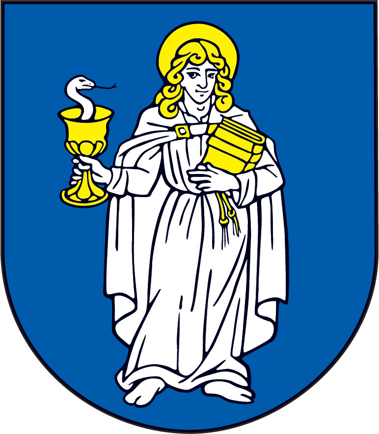 Na modrom štíte je zlatovlasý sv. Ján Evanjelista so zlatou gloriolou okolo hlavy, odetý v striebornom rúchu. V pravici drží zlatý kalich s hadom obráteným doprava, v ľavej ruke pred sebou drží zlatú knihu.